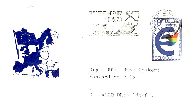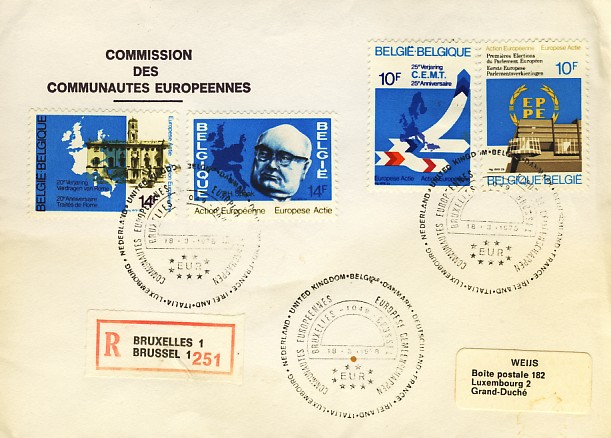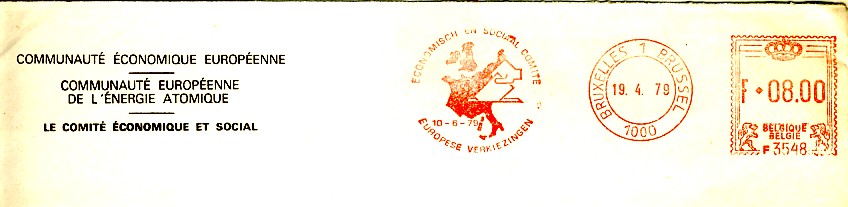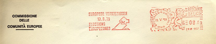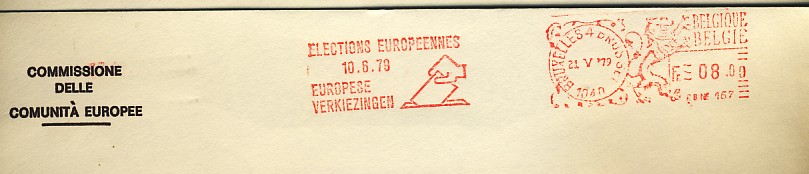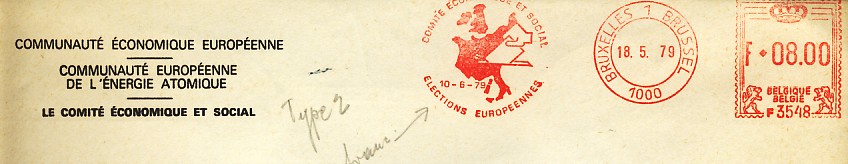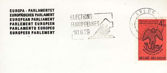 émis pour ces élections (en 1978 et en 1979) ![]() et les FDC de 1978 (Bruxelles et Sclessin ![]() ![]() et ceux de 1979 : Brussel (2), Bruxelles, Ethé, Sint Niklaas ![]() ![]() ![]() 7 EMA ont été émises : la commission (2 bilingues, 1 en français et une en flamand), le Comité economique et Social (1 en flamand et 1 en français) et une d'origine inconnue ![]() ![]() ![]() ![]() ![]() ![]() ![]() 3 flammes francophones : Arlon, Charleroi, Verviers ![]() ![]() ![]() 1 flamme bilingue (Français-Flamand) : Brussel 4 Bruxelles ![]() 4 flammes bilingues (Flamand-Français) : toutes de Bruxelles : Brussel 4 Bruxelles (sans N°), Brussel 4 Bruxelles (1040), Brussel-Bruxelles (X) et Bruxelles-Brussel (X) ![]() ![]() ![]() ![]() 2 flammes en flamand : Andwerpen, Gent ![]() ![]() |