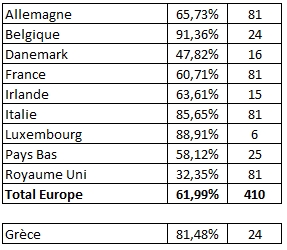 élections sont organisées du 7 au 10 juin 1979 selon les pays. Mode de Scrutin Pour ces premières élections européennes, chaque pays choisit son mode de scrutin : * scrutin uninominal à un tour au Royaume-Uni ;* scrutin proportionnel par circonscription en Belgique, en Irlande et en Italie ; * scrutin proportionnel national au Danemark, au Luxembourg, aux Pays-Bas et en France ; * scrutin hybride proportionnel national/régional en Allemagne. Participation et nombre de député par pays ![]() En 1981 avec l'adhésion de la