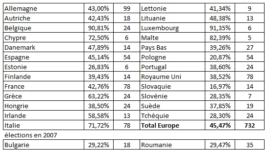 la Bulgarie et de la Roumanie, le nombre de député est porté à 785
