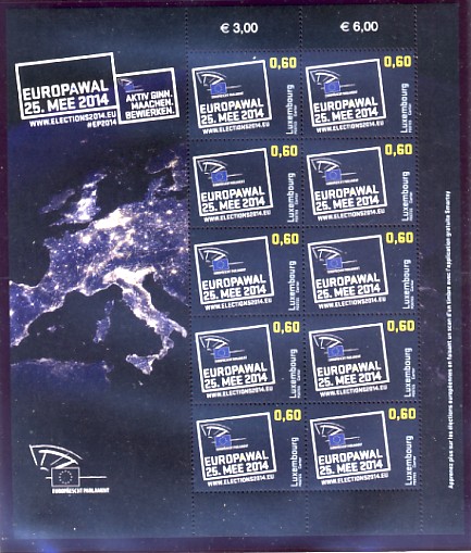 émis pour les élections et le feuillet de 10![]() ![]() Le 1er jour du timbre ![]() et une flamme d'annonce de Luxembourg des élections ![]() |