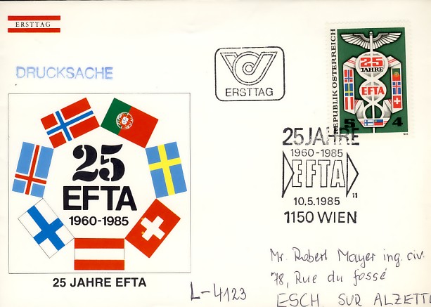 européenne. L'accord de l'Espace économique européen — entré en vigueur en 1994 — est venu approfondir les relations entre certains États de l'AELE (Islande, Liechtenstein et Norvège) et l'Union européenne (UE). La Suisse, après avoir participé aux négociations et signé l'accord, ne l'a pas ratifié, à la suite d'un refus exprimé par le peuple lors d'un référendum. 1960 : Royaume Uni, Danemark, Norvège, Suisse, Portugal, Autriche, Suède 1970 : Islande 1973 : sortie du Royaume Uni et du Danemark 1986 : Finlande 1986 : sortie du Portugal 1991 : Liechtenstein 1995 : sortie de l'Autriche, de la Suède et de la Finlande A ce jour il reste la Norvège, la Suisse, l'Islande et le Liechtenstein 1967 : 7ème anniversaire de l'AELE (y compris par des pays non membre : Finlande, Liechtenstein) Danemark, Finlande, Grande Bretagne, Liechtenstein, Norvège, Portugal, Suède, Suisse ![]() ![]() ![]() ![]() ![]() ![]() ![]() ![]() ![]() 1980 : 20ème anniversaire de l'AELE Autriche, Portugal ![]() ![]() 1982 Finlande (toujours pas membre) ![]() 1983 : réunion ministérielle Norvège ![]() 1984 : réunion ministérielle et sommet Suède ![]() 1985 : 25ème anniversaire de l'AELE Autriche, Islande, Portugal, Suisse, Suède, Finlande (toujours pas membre) ![]() ![]() ![]() ![]() ![]() ![]() ![]() ![]() 1986 : année de l'adhésion Finlande ![]() 1988 Finlande ![]() 1990 : 30ème anniversaire de l'AELE Suède ![]() 2010 : 50ème anniversaire de l'AELE Liechtenstein, Suisse